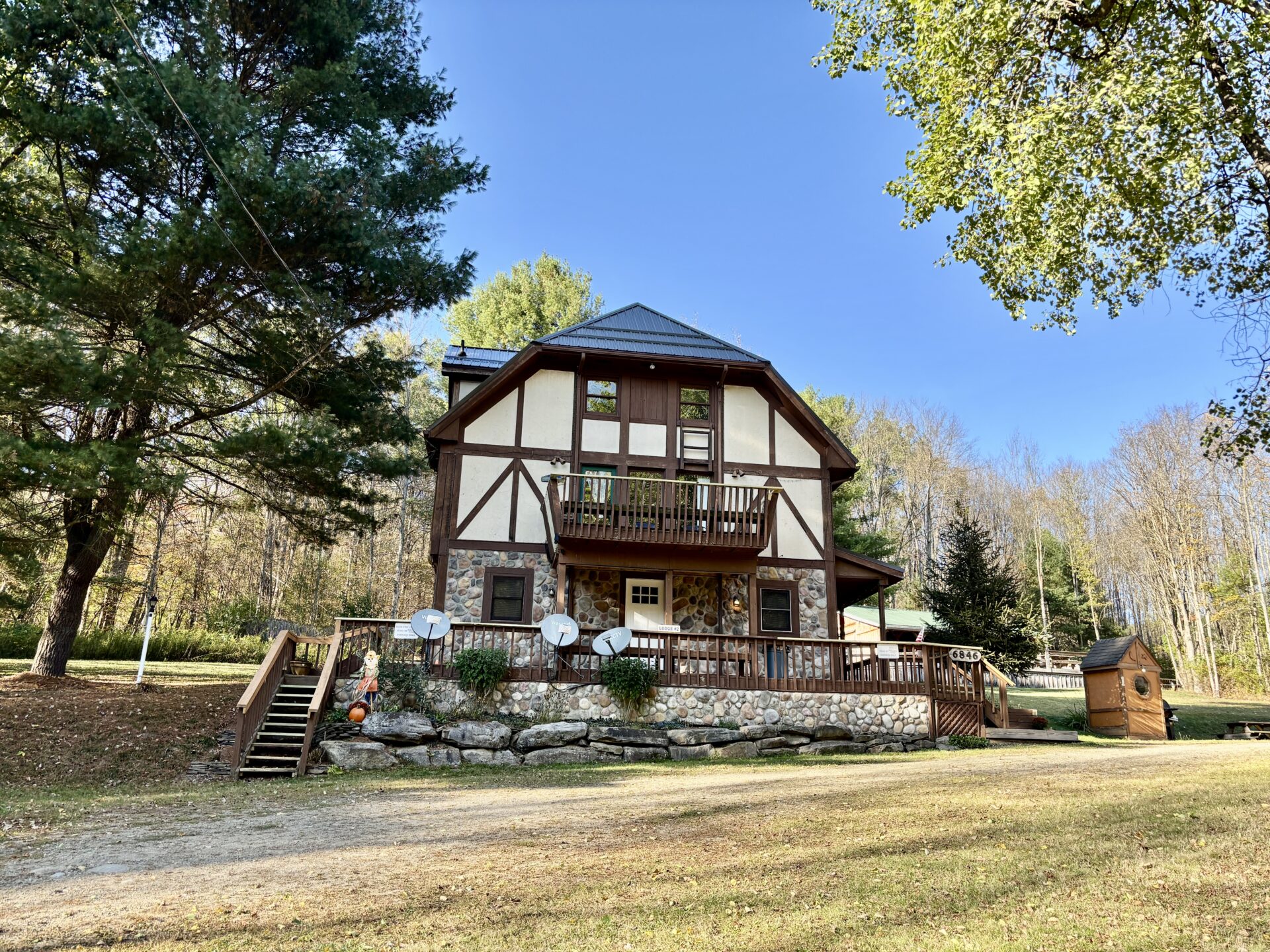 The 1st floor offers 3 bedrooms, 1.5 baths, pull-man kitchen, living area, wood stove and Flat Screen Satellite Direct TV. Sleeps 6-8 guests. The 2nd floor has a much Larger open floorplan, Kitchen & Dining Area. Offers 2 bedrooms, 1.5 baths, sleeps 8-10. Has an entertainment counter top and an open great room with a wood burning fireplace. The 3rd floor offers another 3 bedrooms, 2 full baths, a smaller kitchen & an open great room with a gas fireplace. Sleeps 8-10 guest. The 3rd floor level is annexed and offers it’s own exterior stair entrance around back and is Accessible by exterior decks and walkways.